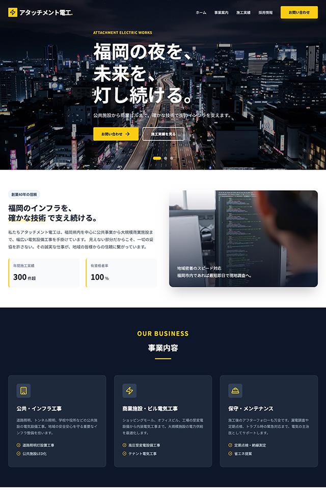 「Web Studio ATTACHMENT(ウェブスタジオ アタッチメント)」は福岡市を拠点として、建設業の中小企業様・個人事業主様向けに特化したWebサイト制作を行なっています。